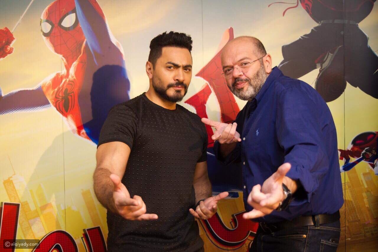 بالصور تامر حسنى فى العرض الأول لفيلم سبايدر مان جهينة يمن